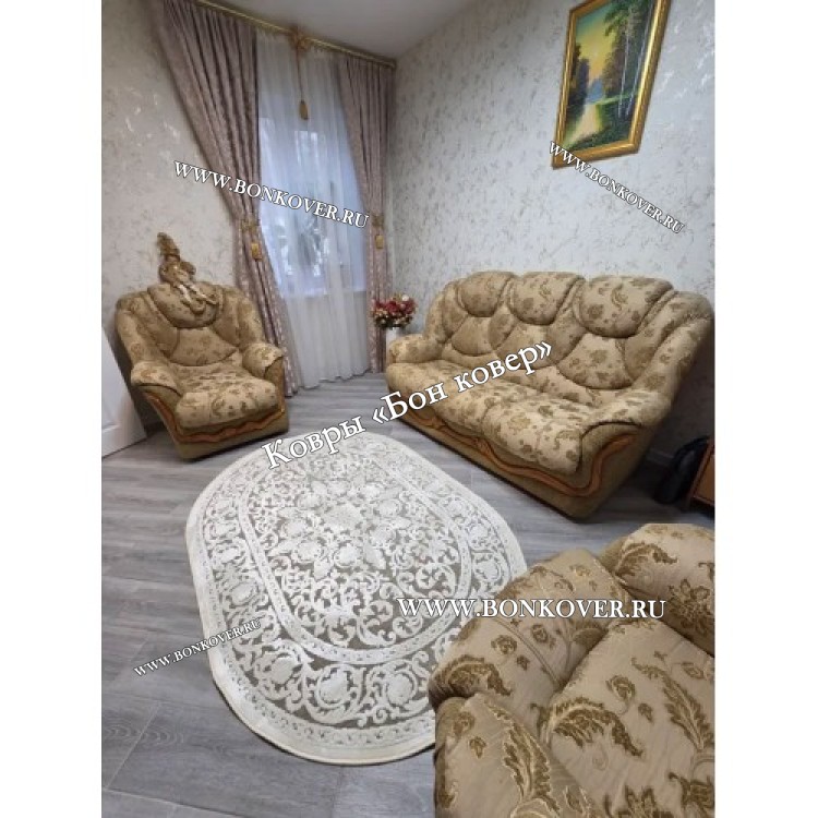 Шикарный Круглый Белый Шелковистый Ковер Дизайн 30542 наполняет интерьер гостиной теплом и уютом, гармонично сочетает в себе изящество и стиль. Он изготовлен из современных материалов, комфортный и долговечный.
